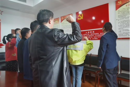 最后,全体党员面向党旗庄严宣誓,重温入党誓词。