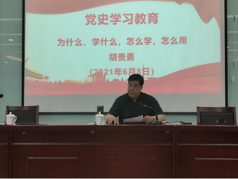 胡贵勇围绕“为什么开展党史学习、党史学习学什么、如何开展党史学习、党史学习成果如何应用”四大问题,进行了深入浅出的阐述。中国共产党党史是一部生动的教材,学习党史、新中国史、改革开放史、社会主义发展史,有利于广大党员从党的百年征程中坚定理想信念、凝聚磅礴力量,提升应对风险挑战的能力和水平,在全面建设中国特色社会主义现代化国家的伟大实践中建功立业。