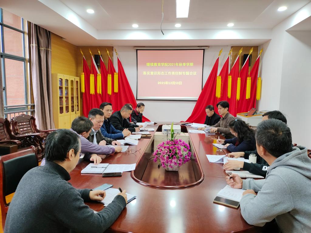 2021年12月10日上午,继续教育学院在后勤大楼406会议室组织召开2021年秋季学期党风廉政建设暨意识形态工作专题会议。会议由党总支书记周志辉同志主持,全体党员参加会议,其他非党员列席会议。
