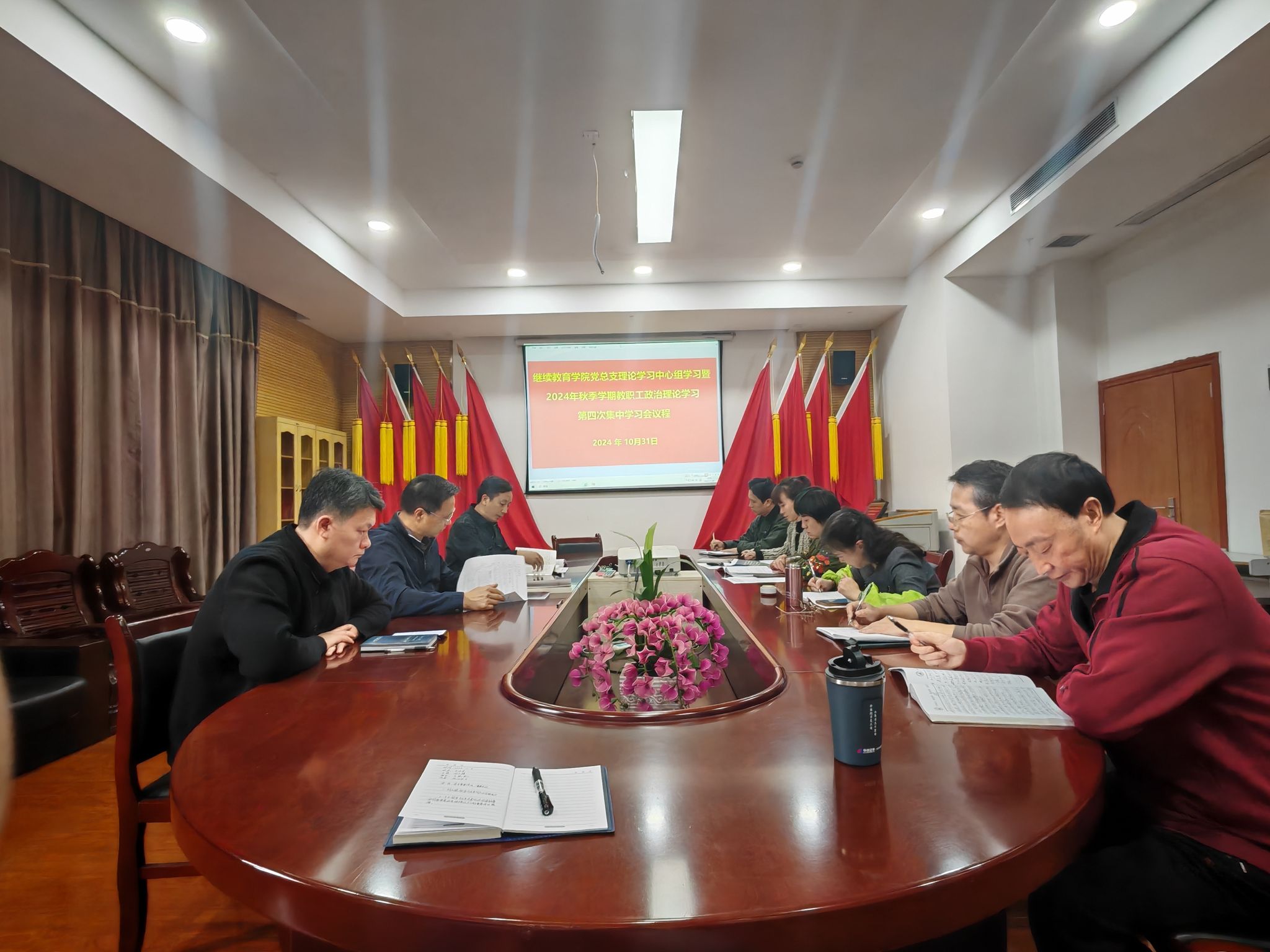 10月31日下午,继续教育学院党总支在后勤大楼406会议室召开理论学习中心组学习暨2024年秋季学期教职工政治理论第四次集中学习会。党总支书记周志辉主持会议,全体教职工参加学习。