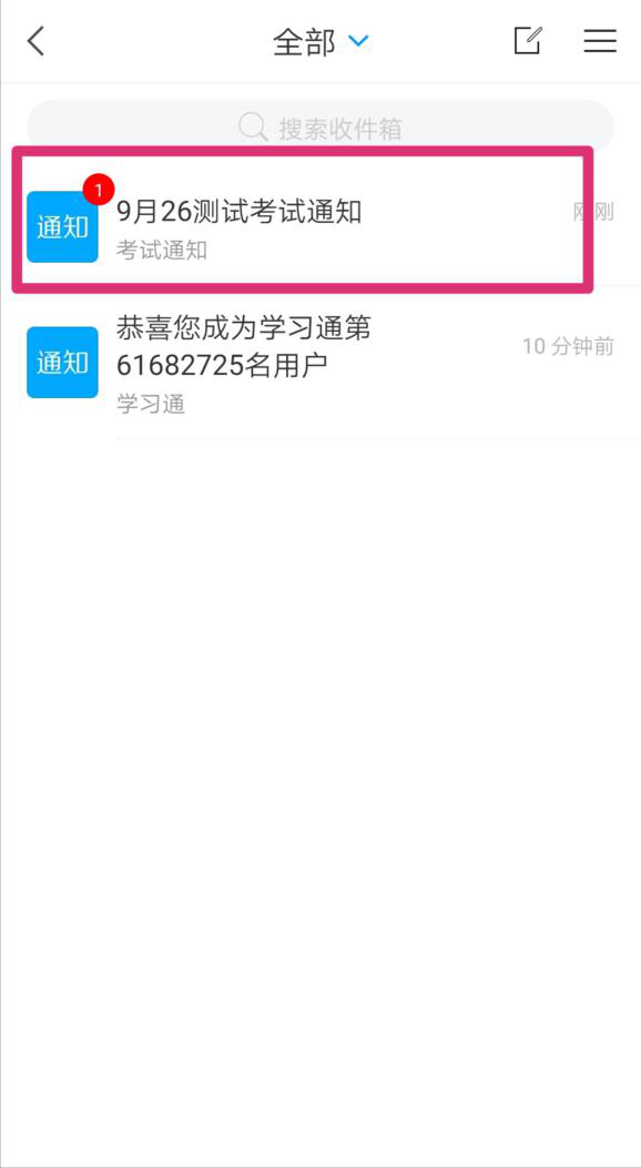 2.考试:登录成功之后在收件箱里找到学位考试发布的考试通知,点击查看进入通知页面,页面显示考试名称及考试开始时间和结束时间,考生通过人脸识别进入考试,在考试过程中手机前后摄像头实时抓拍考试情况,并且监控考生切屏情况。进入考试之后不允许退出考试,请各位考生在考试过程中注意考试时间,考试时间一到系统将自动交卷。