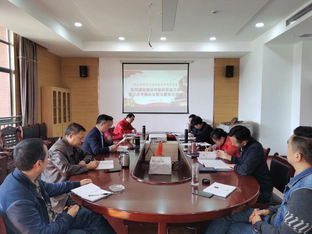 2020年10月23日上午,继续教育学院在后勤大楼406会议室组织召开了2020年第三次党风廉政建设暨意识形态工作专题会议。会议由蒋自立同志主持,本院全体党员出席会议,其他非党员列席会议。