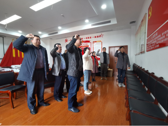 最后全体党员面向鲜红的党旗,重温入党誓词。郑重宣誓“我志愿加入中国共产党,拥护党的纲领,遵守党的章程,履行党员义务…”,回忆入党过程,坚守入党初心,增强党员意识,牢记党员使命。