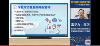 产学研发展中心于2022年9月20日组织教职工通过动静APP观看了《贵州教育大讲堂》(特别节目)。全体教职工认真听取了贵州医科大学临床医学院副院长(附属医院感染科主任医师)穆茂博士的教育系统如何实施《新型冠状病毒肺炎防空方案(第九版)》科普讲座。