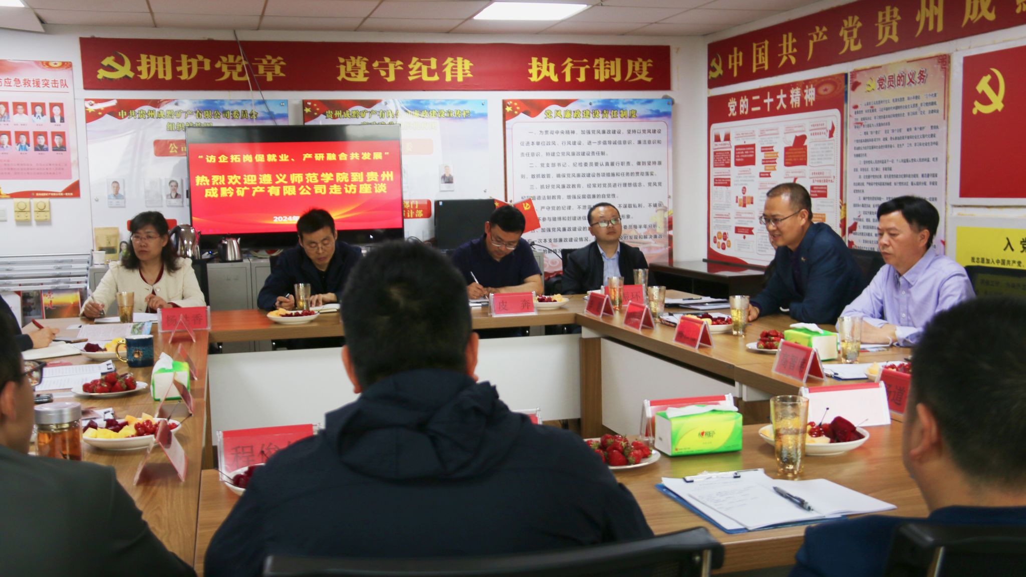 4月3日,微信买球官方网站党委书记陈治松,党委委员、副校长刘衍民带队,先后前往贵州成黔矿产有限公司、贵州地矿局一〇二地质大队,围绕“访企拓岗促就业,产研融合共发展”主题,开展走访调研和座谈交流活动。