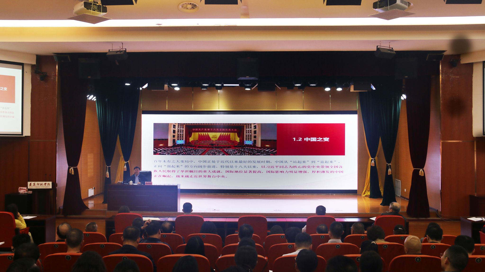 开班式后,学校党委书记陈治松以《提振干事创业精气神,激发担当作为新活力,凝心聚力加快建设“遵义师范大学”》为题作了首场专题辅导报告。陈治松围绕新时代领导干部如何更好担当作为这一主题,结合个人丰富工作经验,深入浅出地分析了新时代教育改革背景下学校面临的机遇与挑战、使命与担当以及当前学校干部队伍建设的难点与堵点,提出了解决问题的思路与方法。他勉励全体处科级干部要在学校“爬坡上坎”“提档换速”的关键期和“申硕”“上划”成功的新起点上,以时不我待的机遇意识抢抓先机,以“人一之我十之”的干劲和冲劲打好“扩硕、升大、强师、助推产业”战役,为建成名副其实的“遵义师范大学”而努力奋斗!