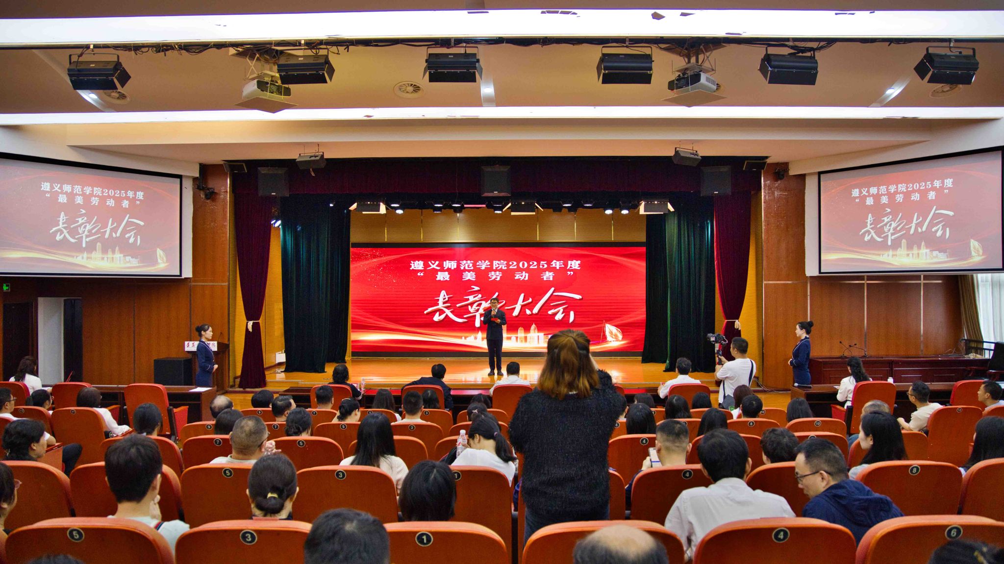 学校2025年获表彰的“最美劳动者”,党委委员、副校长胡贵勇,党委委员、副校长肖仲久,党委委员、宣传部部长王春华,各分工会主席,各二级学院师生代表共同见证这场致敬劳动奉献的大会。
