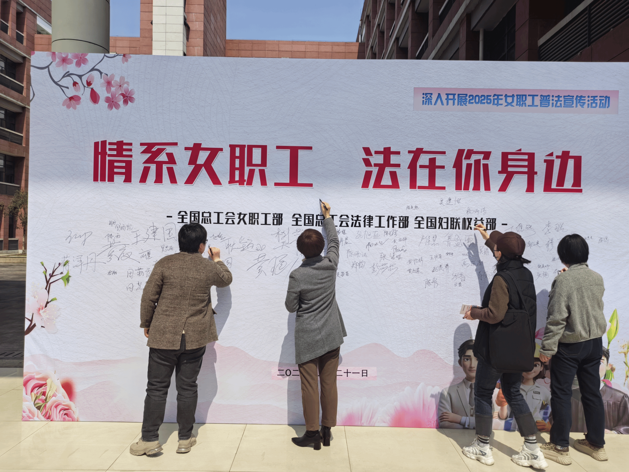 为积极维护女职工合法权益,大力营造关心关爱女职工的良好氛围,校工会主办的“情系女职工 法在你身边”2025年贵州省女职工普法宣传讲座于2025年3月21日在执治楼105(VR教室)成功举行,校党委副书记江山出席了签名仪式。活动吸引了60余名女教职工参加,通过专家解读、案例剖析与现场答疑,为女职工送上了一份“法治礼包”,助力职场权益保障与身心健康发展。