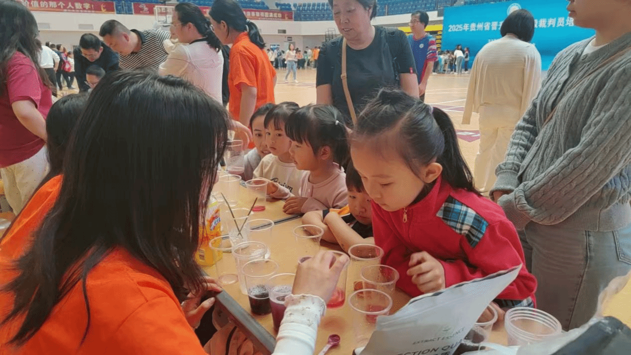 化学实验、物理实验展区最为孩子们喜爱,志愿者们以生动且具亲和力的讲解,为现场的小朋友们带来沉浸式的化学、物理知识科普体验。孩子们通过志愿者的讲解和对一个个小实验的观看,体验以及亲手操作,在小小的心灵里种下了“知其然更知其所以然”科学热忱。