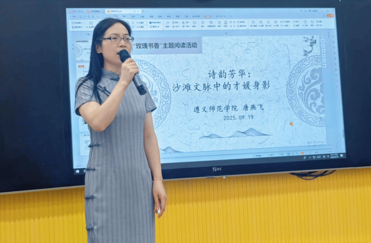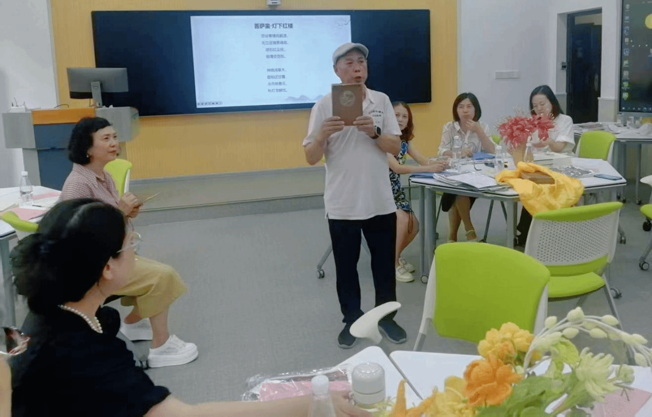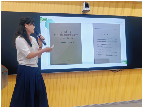 分享环节,五位来自不同学院的教师依次带来深度解读:《沙滩文脉中的才媛身影》婉约隽永,《习近平关于家庭家教家风建设论述摘编》发人深省,《攻坚路上》振奋人心,《辨“预制〈红楼〉”、品原著真味》妙趣横生。在舒缓的音乐萦绕中,分享者声情并茂,引领大家穿梭于字里行间,感受生活与社会的辽阔,触发关于家庭、情感、国家与人生的深刻共鸣。