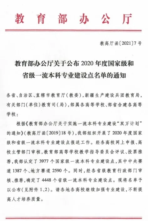 2019年4月,教育部启动了一流本科专业建设“双万计划”,即2019—2021年,建设10000个左右国家级一流本科专业点和10000个左右省级一流本科专业点。本次发布的是教育部实施一流本科专业建设“双万计划”的第二批评选结果。