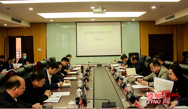 4月1日上午,遵义高校安全保卫工作座谈会在买球行政楼322会议室召开。市人民政府副市长、市公安局局长彭容江,买球党委副书记洪涛、副校长胡贵勇,其他六所在遵高校有关负责人等参加会议。市公安局党委副书记、常务副局长王思来主持会议。