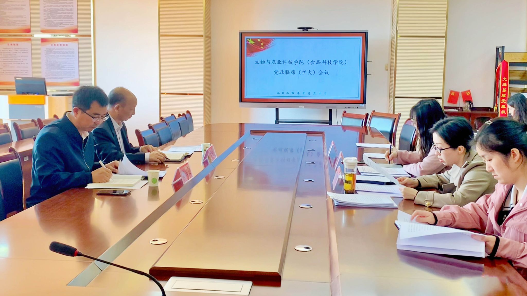 本网讯(文、图/党政办公室) 10月30日下午,学校党委副书记曾伯平到所联系的生物与农业科技学院列席指导党政联席会议,强调生物与农业科技学院要不断加强自身建设,认真执行“两个议事规则”,遵循学校“1234”工作思路,以高质量党建引领特色高质量发展。