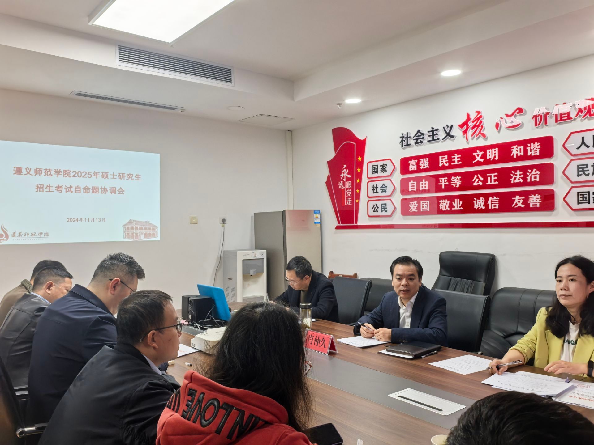 本网讯(文、图/发展规划处) 为贯彻落实教育部及贵州省关于做好2025年全国硕士研究生招生考试的相关文件精神,确保2025年硕士研究生考试自命题工作平稳、顺利,11月13日上午,微信买球官方网站在行政楼424会议室召开2025年全国硕士研究生招生考试自命题工作协调会。