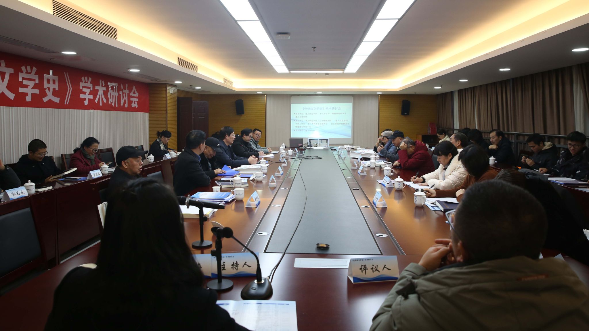 来自贵州省仡佬学会、贵州省文艺评论家协会、遵义市文联、遵义市文艺理论家协会、遵义市历史文化研究会、微信买球官方网站、遵义医科大学的专家学者、师生代表围绕《仡佬族文学史》的内容、特点、价值等进行了深入研讨。