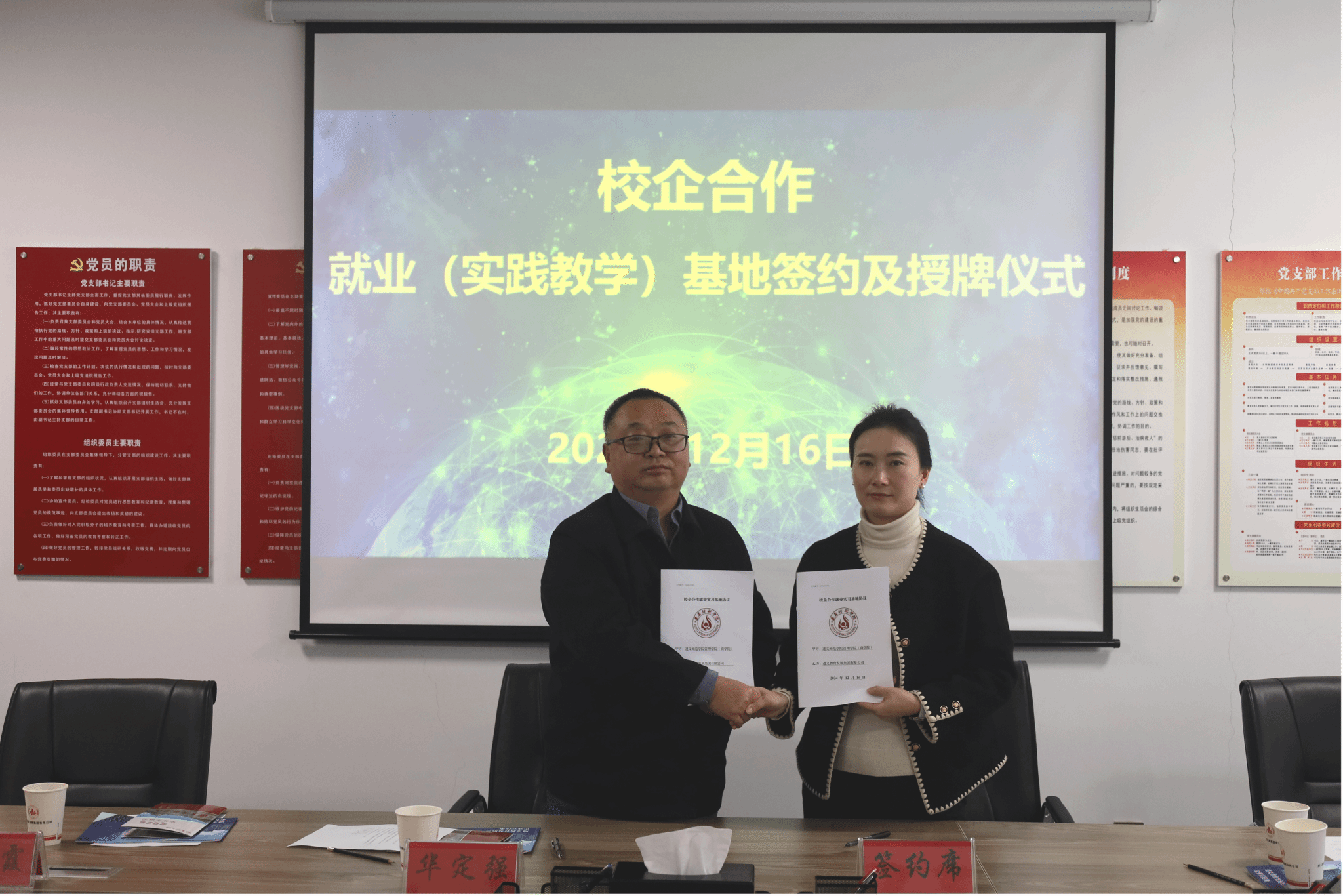管理学院党总支书记华定强和封秀英共同签订党建结对共建协议书和校企合作就业实习基地协议。