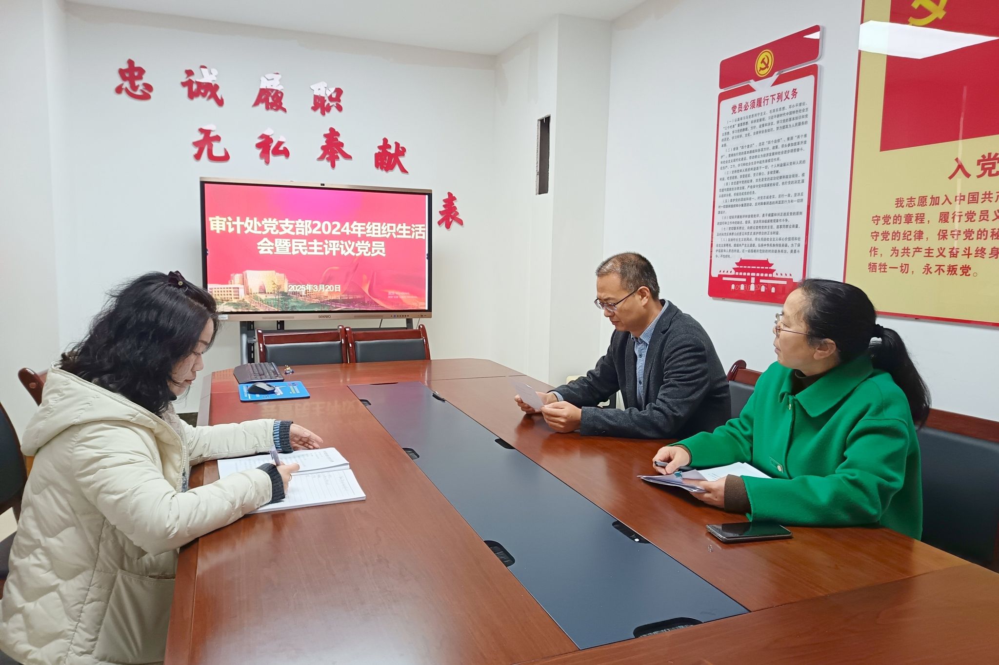 会议听取了审计处党支部2024年工作开展情况和上一年度查摆问题整改落实情况。随后,全体党员对党支部工作进行评议,并严肃认真地开展了批评与自我批评。