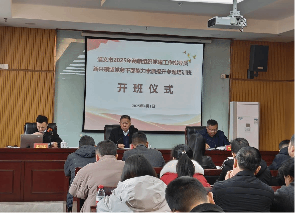 本网讯(继续教育学院) 4月1日,遵义市2025年两新组织党建工作指导和新兴领域党务干部能力素质提升专题培训班在微信买球官方网站举行。中共遵义市委社会工作部副部长付胜奎,微信买球官方网站党委委员、副校长吴波出席开班仪式。