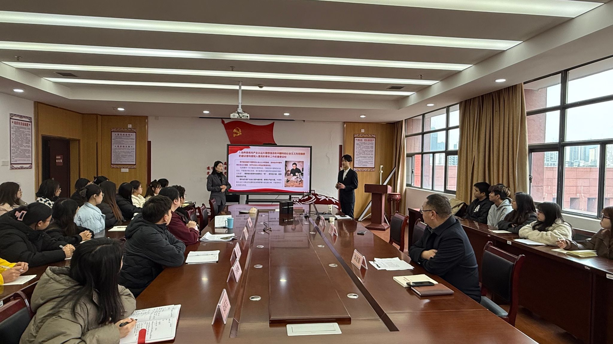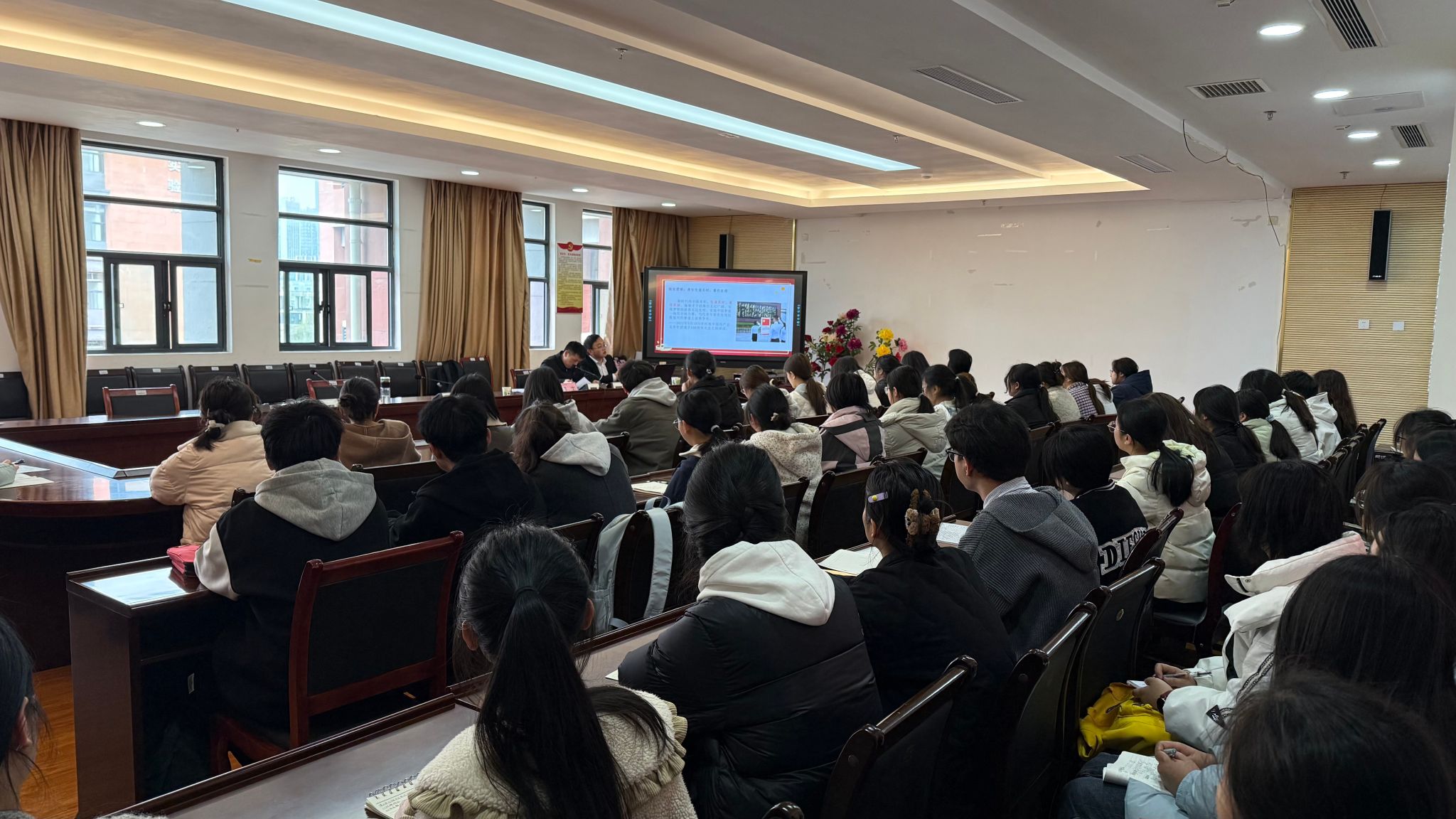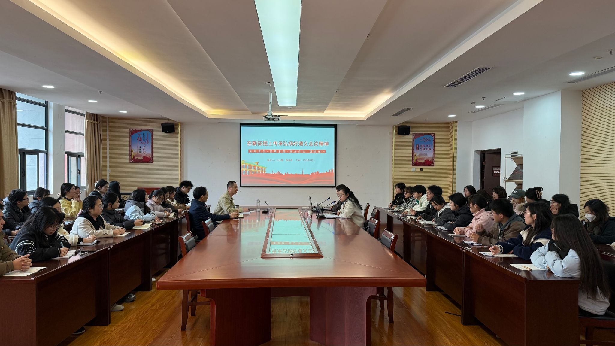 中共贵州省委党校马克思主义学院讲师陈海燕、刘玉康在人文与传媒学院作题为《在新征程上传承弘扬好遵义会议精神》的宣讲,深刻解读长征精神、遵义会议精神的内涵,引导大家坚定理想信念,弘扬长征精神和遵义会议精神,走好新时代的长征路。
