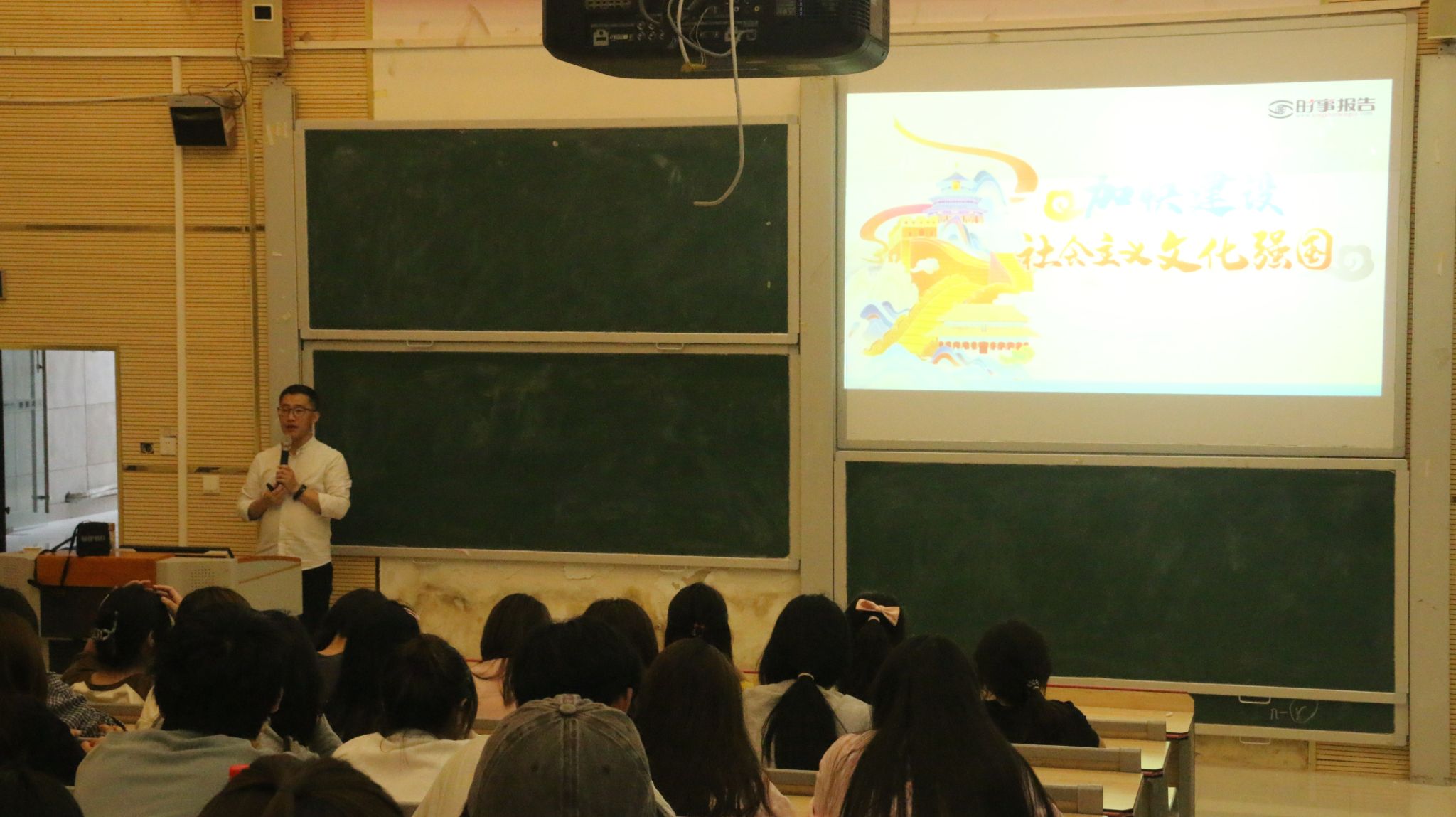 课程围绕文化展开。王春华从担负新时代文化使命的必然要求、全面建成社会主义现代化强国的必然要求、实现中华民族伟大复兴的必然要求、推动构建人类命运共同体的必然要求四个方面,分析了建设文化强国的重要性,强调青年要勇于担当、善于担当。