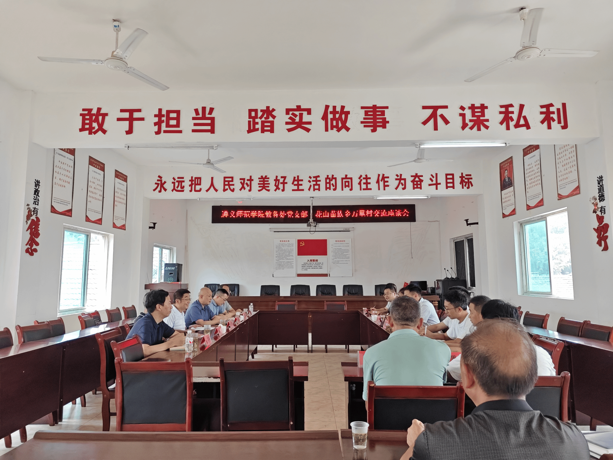 花山乡领导介绍了当地经济、社会、教育发展情况,特别提到了民族教育的特色与发展困境,希望微信买球官方网站能在民族文化传承教育、师资培训、教育信息化建设等方面给予支持。花山乡中心学校、花山民族中学、花山小学负责人汇报了学校在教育教学、师资队伍、校园文化建设、学生心理辅导、实践实训等方面的工作情况及存在的困难。万里村负责人介绍了万里村发展基础与现状。驻村干部何林围绕智力支持、旅产业振兴、教育帮扶等方面的工作及规划进行汇报。