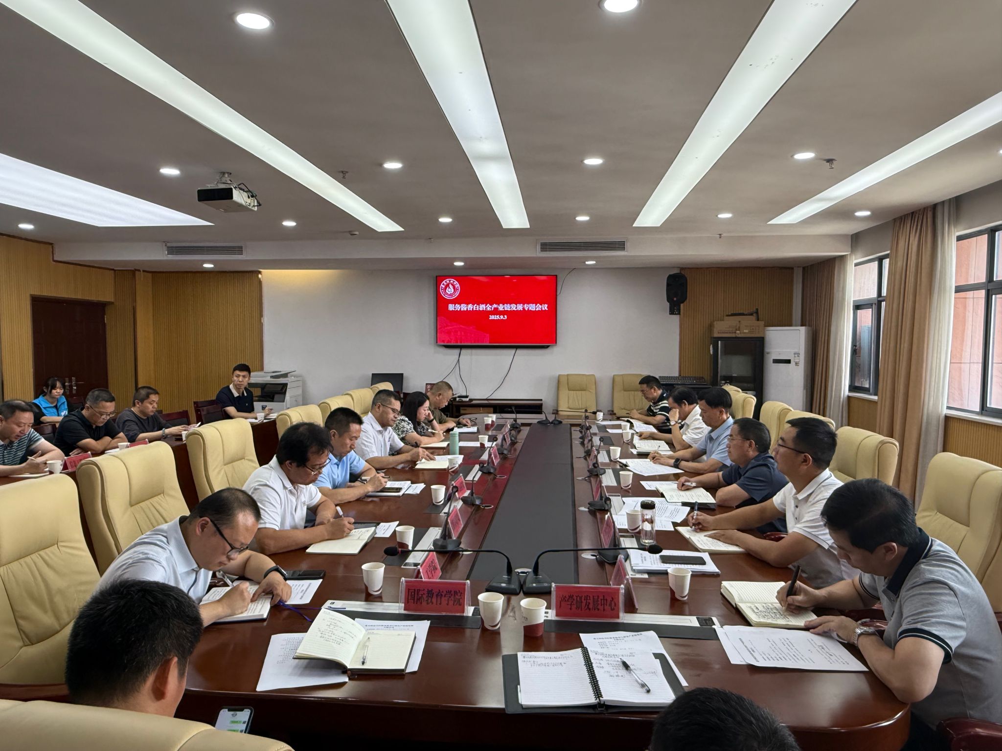 与会职能部门、二级学院负责人,就具体工作任务进展、存在的困难等作了交流,并就如何继续更好支持酱香白酒产业全面发展进行了深入探讨。