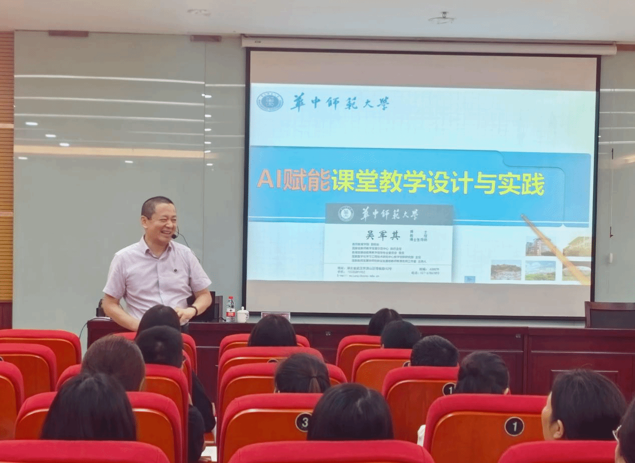 华中师范大学教授刘来兵深入解读了新时代教育家精神的内涵;教授吴军其生动展示了AI技术在课堂教学中的创新应用;教授雷江华系统阐述了高校教师科研能力提升的路径。