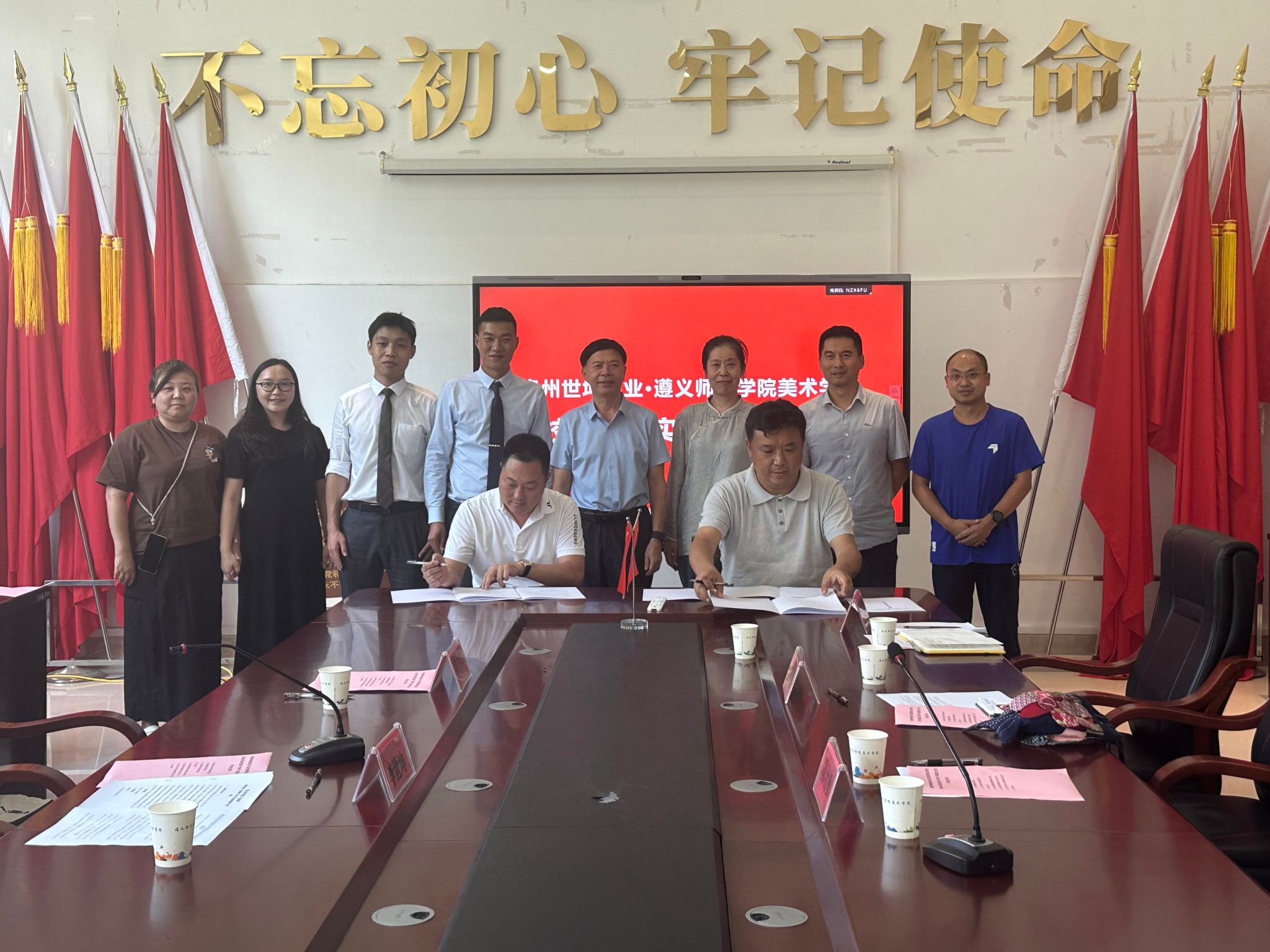 学校党政办公室、美术学院及贵州黔越优品进出口电子商务有限责任公司相关工作人员参加仪式。