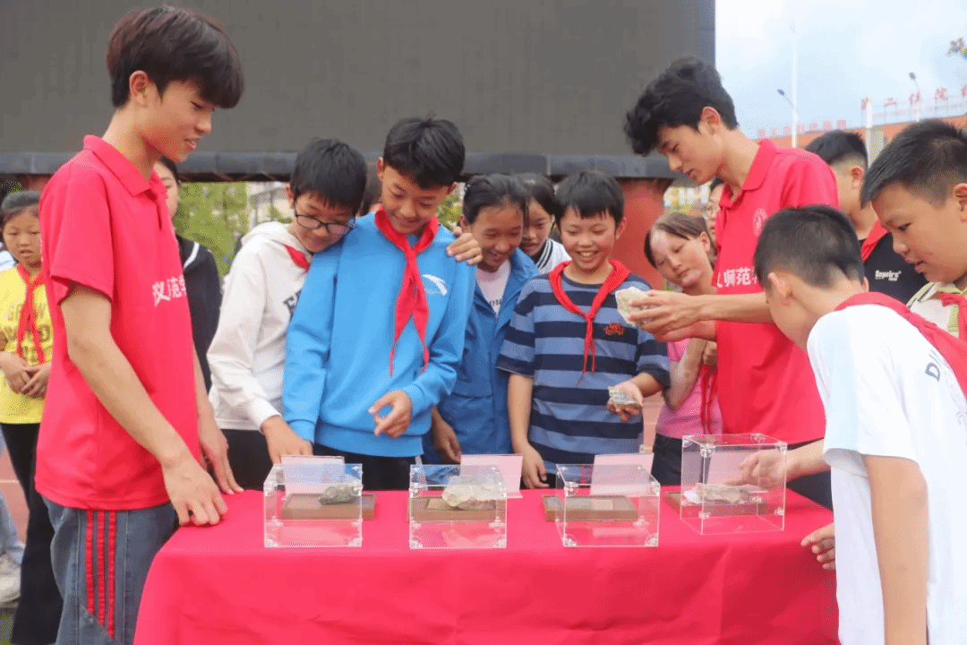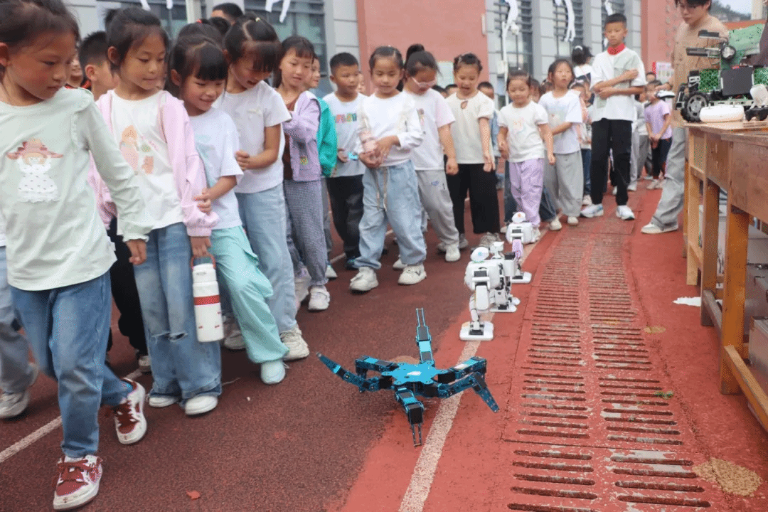 新蒲新区第三小学操场上,一场精彩纷呈的“科技嘉年华”同步上演。微信买球官方网站各二级学院的师生带来了形式多样、内容丰富的科普展示与互动体验:工学院展出结构设计模型、机器人舞蹈、机械臂装置及“富矿精开”主题矿石标本;物理与电子科学学院现场演示科普作品制作过程;化学化工学院开设“魔法实验室”,用趣味实验展现化学之美;信息工程学院携科大讯飞智能一体机亮相,展现人工智能前沿应用;教师教育学院“红色剪纸”艺术展巧妙融合传统文化与科技创新,彰显美育与智育的交融。