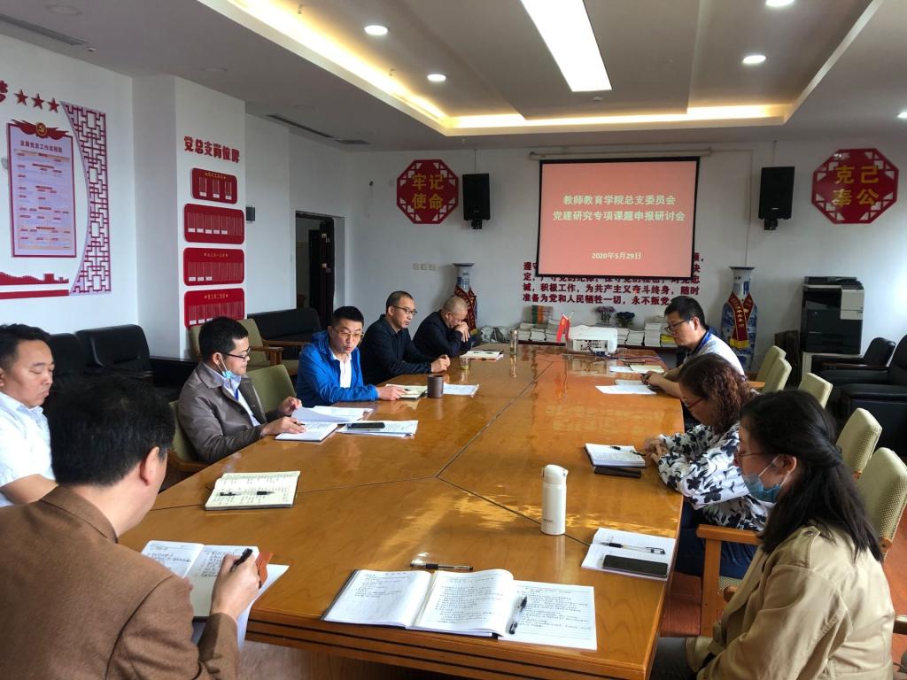 2020年5月29日上午11点,教师教育学院党总支在执毓楼319会议室召开党建研究专项课题申报研讨会。教师教育总支委员会全体委员参加会议,心理健康咨询中心主任罗永忠、教师代表王先平、朱江华、杨青松列席会议。会议由秦进书记主持。