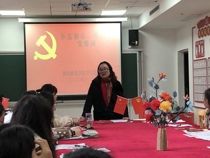 纪念一二九,弘扬爱国情。在建党99周年之际,2020年12月9日教师教育学院学生第二党支部开展“不忘入党初心,手写入党誓词”主题党日活动。邀请学生党员拿起手中的笔,从新写下入党时加入共产党时充满激情与理想的誓词。让党员初心向党的初心对标看齐,加深对一二·九运动这一历史事件的认识,激发大家爱党、爱国、爱校、爱岗的热情,增强大家做好学生党员的责任感与使命感。