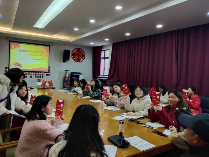 为了使党内生活庄重、严肃、规范、坚决防止和克服党内政治生活不讲原则、平淡化、庸俗化、随意化的倾向,也为激发党员的工作积极性、主动性和创造性。12月12日下午,教师教育学院学生第三党支部在党员活动室开展了“党员政治生日”主题活动,为本月政治生日的党员举行了集体“庆生”活动。