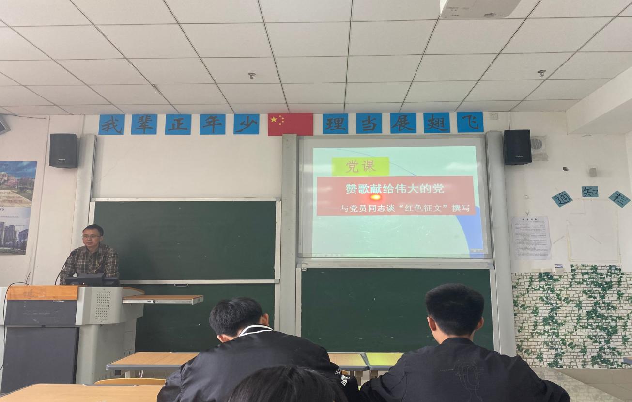 5月21日下午,受学院党委安排,党建工作组织员徐开良同志在执毓楼105教室以《赞歌献给伟大的党——与党员同志谈“红色征文”撰写》为题,给学生党员(含预备党员)上了一堂生动的党课,60余名学生聆听党课。