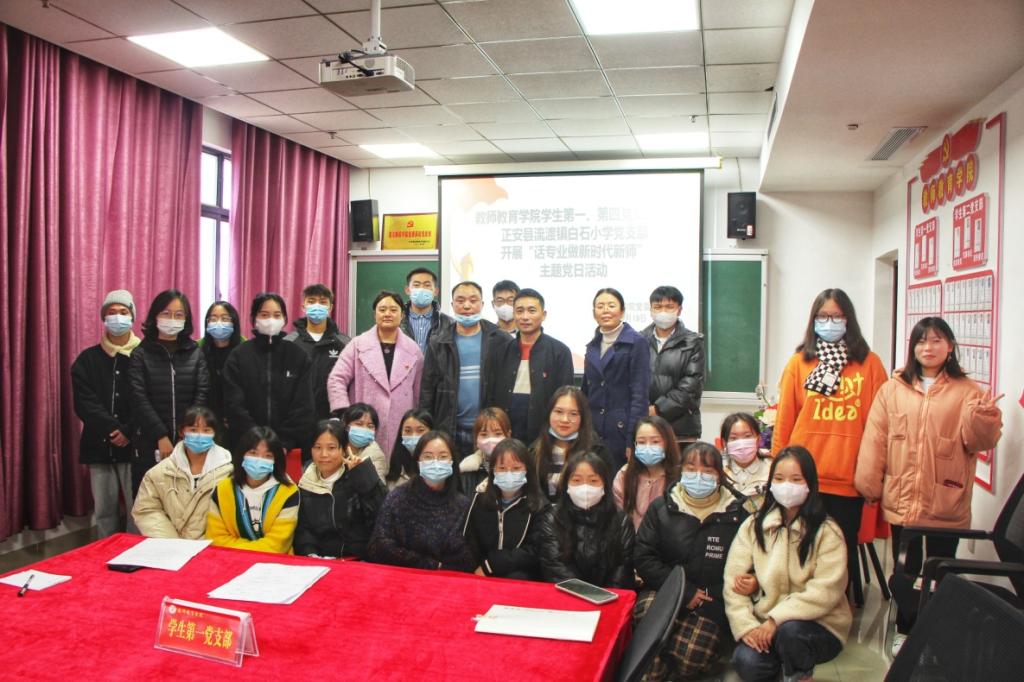 教师教育学院党委组织学生第一、第四党支部联合正安县流渡镇白石小学和中心小学开展“学党史承红色基因,话专业做时代新师”主题党日活动