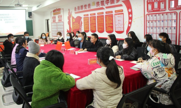 2021年11月19日下午,为促进党的建设工作学习交流,进一步加深同学们对乡村教师工作的了解,教师教育学院党委组织学生第一、第四党支部联合正安县流渡镇白石小学和中心小学教师在执毓楼403党员活动室开展了“学党史承红色基因,话专业做时代新师”主题党日活动。教师教育学院党委委员、副院长王文乔,党委委员、学生党支部书记骆颖,正安县流渡镇白石小学校长兰君,正安县流渡镇中心小学潘毅吉老师以及学生第一党支部、第四党支部小学教育专业学生党员、入党积极分子参加本次主题活动。