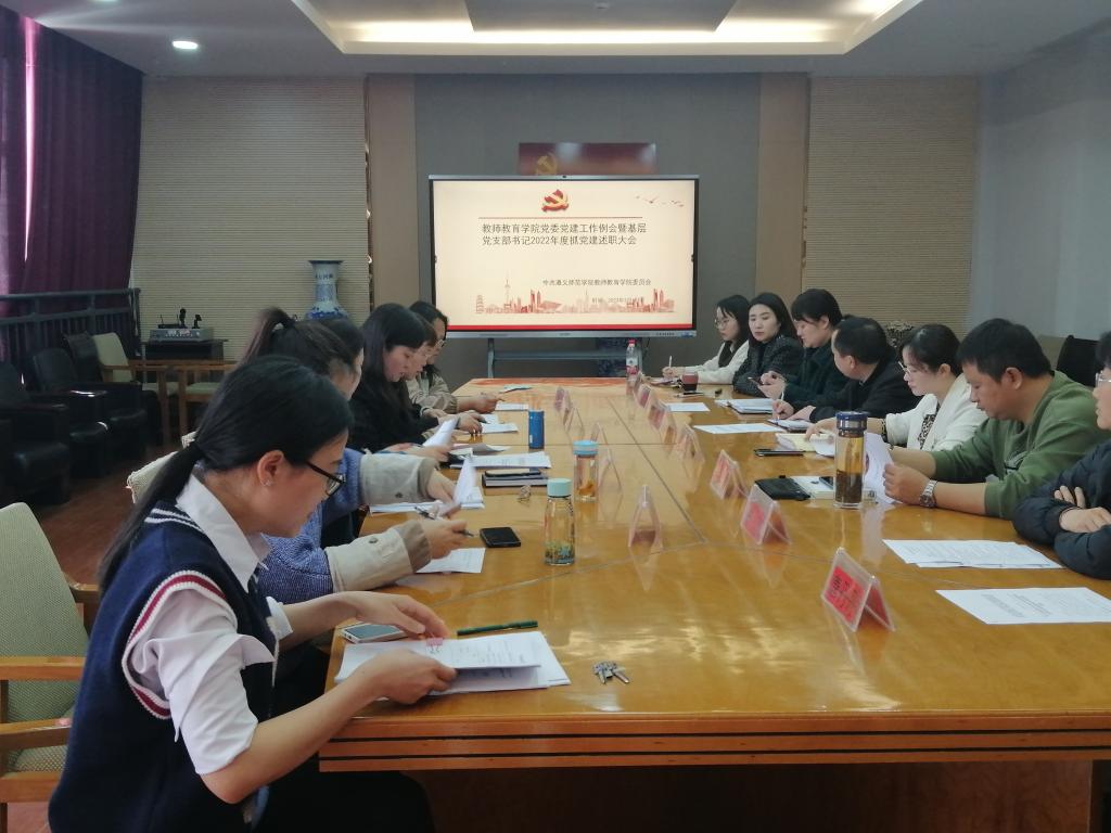 2023年3月10日,微信买球官方网站教师教育学院党委在执毓楼319举行2022年度基层党支部书记述职大会。党委书记王洪叶、副书记李湘丽,党委委员、副院长王文乔、周云等出席,教工、学生党支部成员及党员代表、群众代表参加大会。会议由党委副书记李湘丽同志主持。