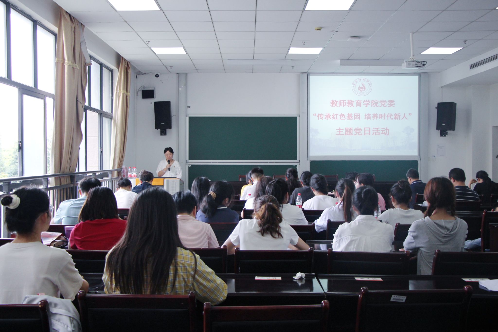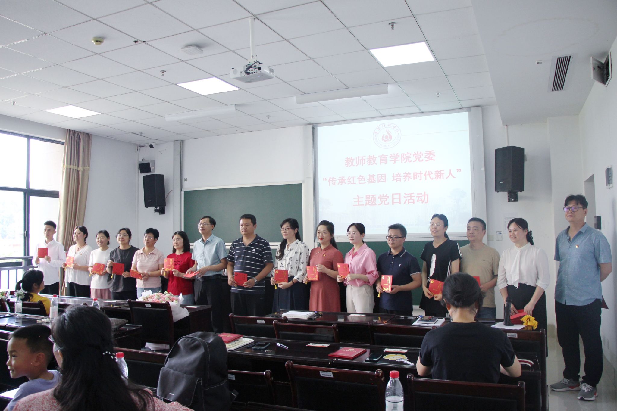 为弘扬党的光荣传统和优良作风,教师教育学院党委于2023年6月30日在执毓楼103会议室开展“传承红色基因 培养时代新人”主题党日活动。教师教育学院党委书记王洪叶,党委副书记李湘丽,党委委员、副院长王文乔及全体党员参加会议,学生第二党支部书记骆颖同志主持了本次活动。