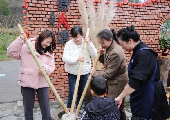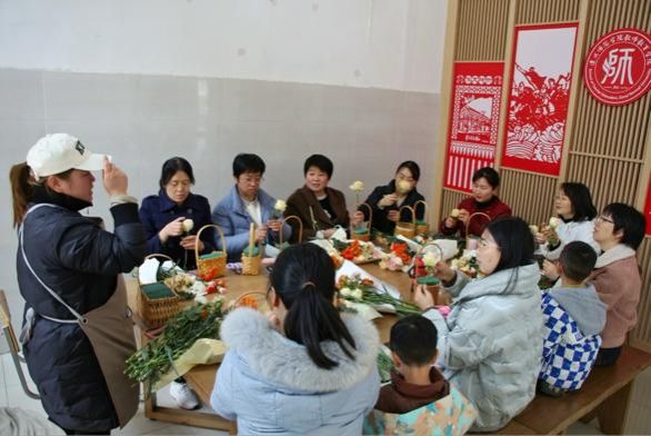 活动分为“花艺沙龙”和“海龙屯踏青赏花春游”两部分。“花艺沙龙”活动中,现场花香四溢,花艺老师为参与人员讲授各种花卉名称及其所含花语和祝福,大家一边听着老师讲解,一边跟着老师选择花枝设计造型、搭配色彩,精心修剪,从馥郁的花香中领会古雅之美,寻求放松,从作品欣赏中获得满足。用大小不一的花束传递着美好的祝福与愿景。而踏青组女教师则来到海龙屯景区,漫步古道,赏漫山花色。她们体验了传统技艺打糍粑,在围炉煮茶中探索并开启女性力量。