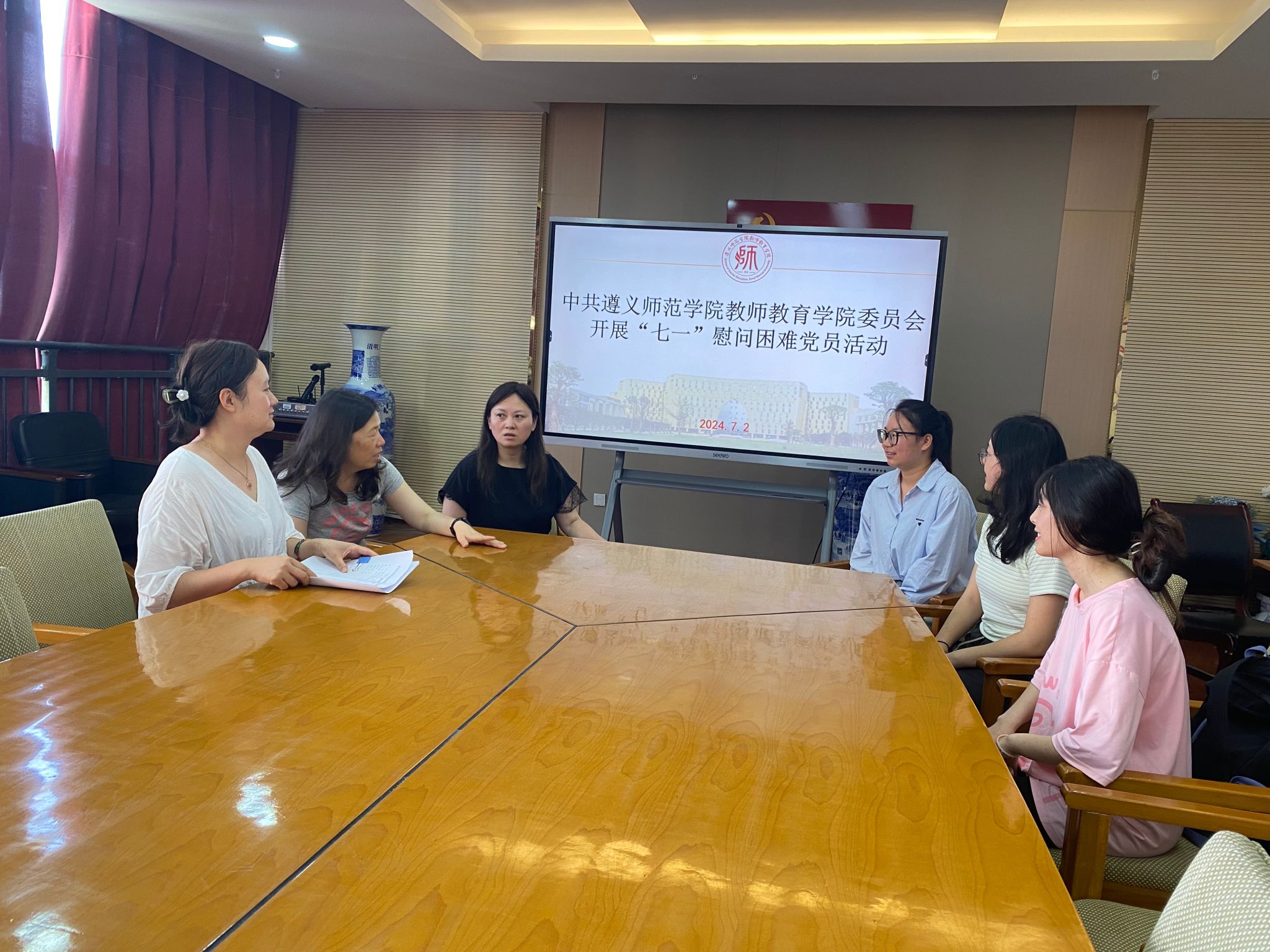 为了进一步巩固和深化党的群众基础,以实际行动向广大党员传达党的温暖与关怀,我院于 2024年7月2日在执毓楼319会议室组织开展了慰问困难党员的活动。学院党委书记王洪叶,党委委员、副院长李章琼,专职组织员骆颖参加了慰问活动。