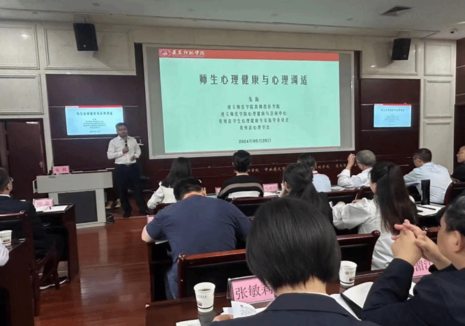 2024年5月底,在全国上下对学生心理健康比较关注的背景下,朱海受邀在遵义市教体系统党组织书记暨党务干部能力提升班中作“师生心理健康与心理调适”的专题讲座。本次就目前教师和学生心理的现状进行了交流,同时也提出教师和学生如何调试心理的方式方法。