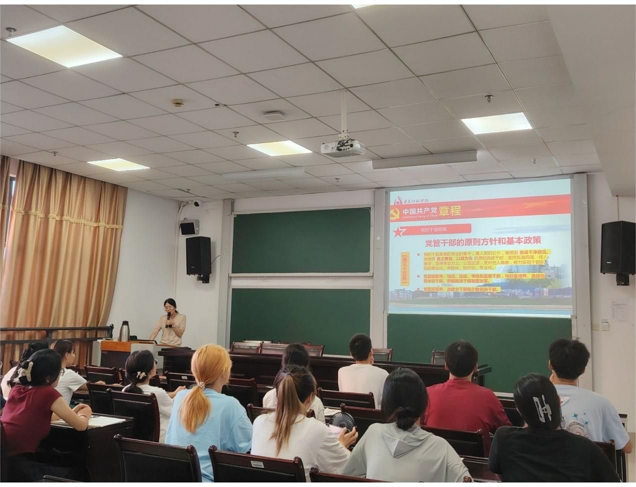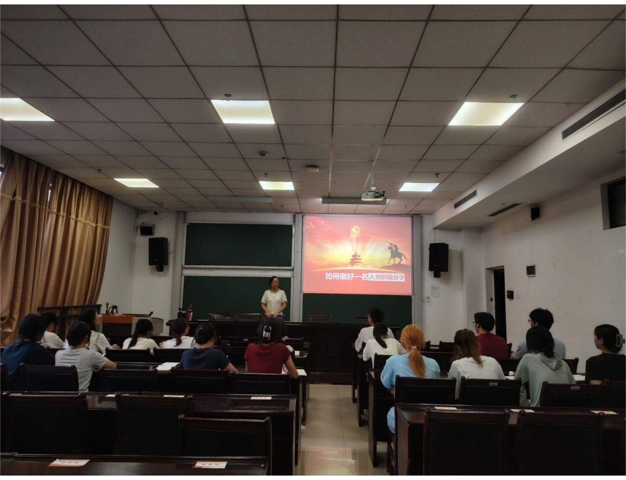 学院党委委员秦建勋同志上了一堂题为《如何成为一名合格的入党积极分子》的党课。她鼓励积极分子们要端正入党动机,积极投身于社会实践,坚定理想信念,争取早日加入中国共产党。