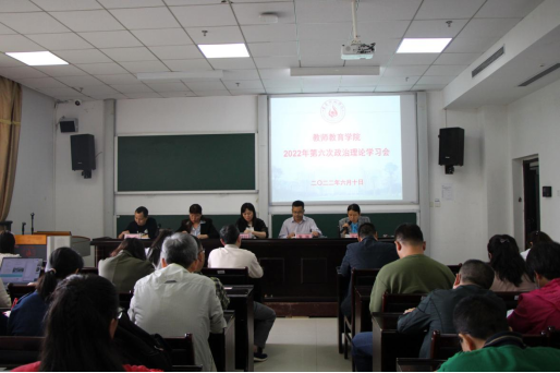 6月10日下午,教师教育学院在执毓楼103会议室召开2022年第六次教职工政治理论学习会。全院教职工参加会议,大会由党委书记王洪叶同志主持。