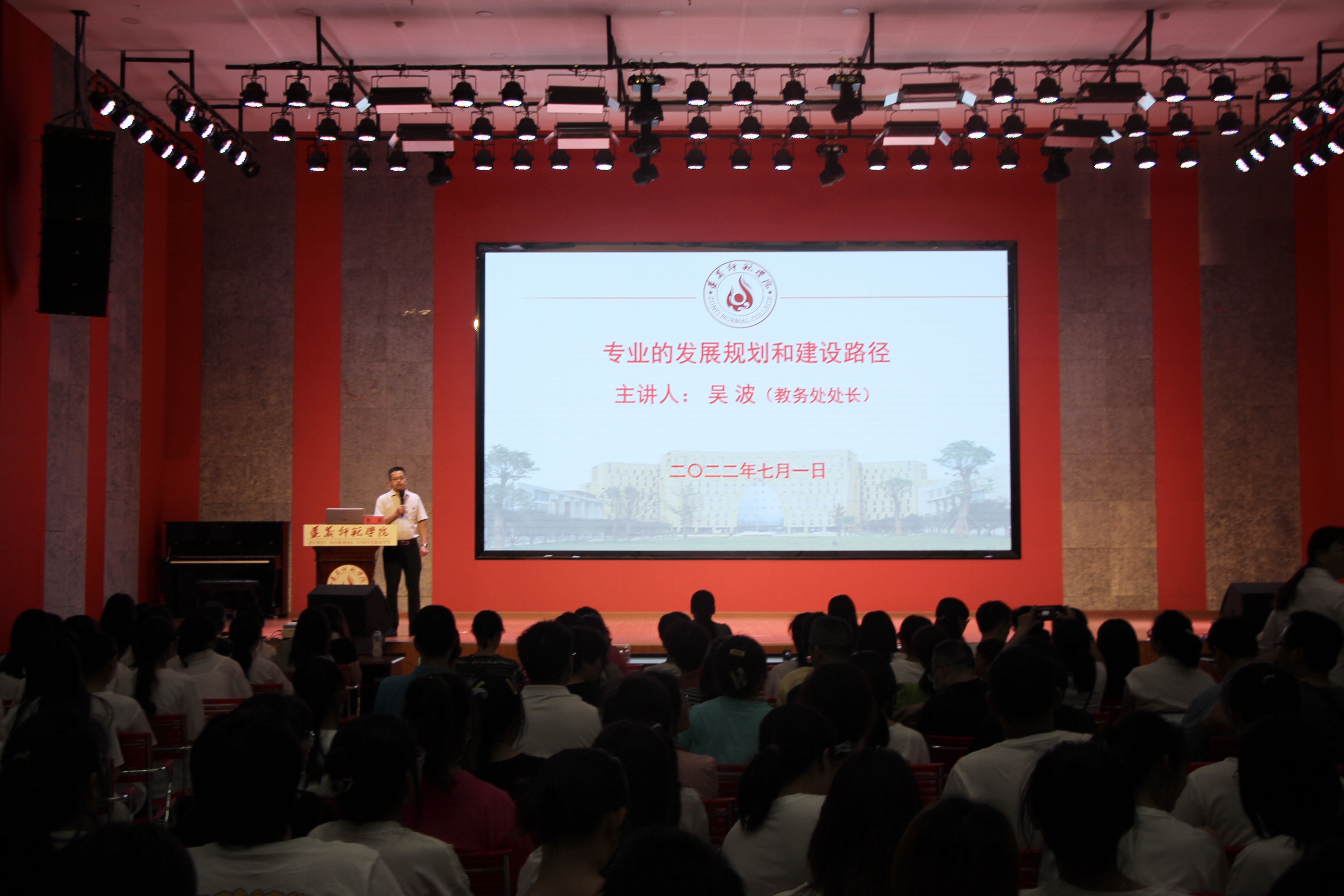 2022年7月1日,教师教育学院在学生活动中心二楼长征大讲堂召开2022年教职工第八次政治理论学习会,全体教职工参加会议,大会由党委副书记、院长朱海同志主持。