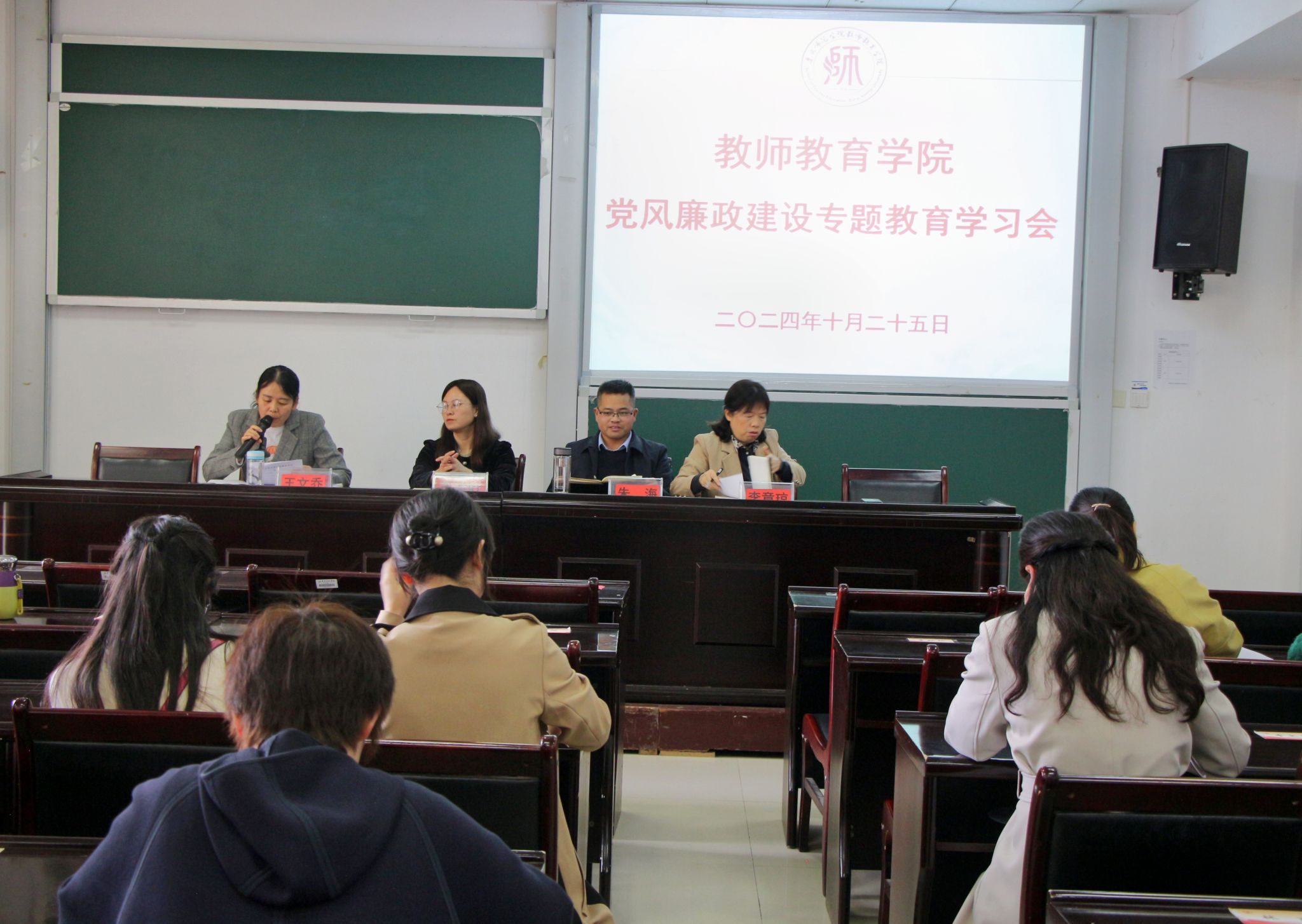 为深入推进全面从严治党,坚持抓好反腐败建设,教师教育学院于2024年10月25日在执毓楼103会议室召开党风廉政建设际警示教育专题学习会。教师教育学院全体党员及教职工参加,会议由党委纪检委员王文乔同志主持。