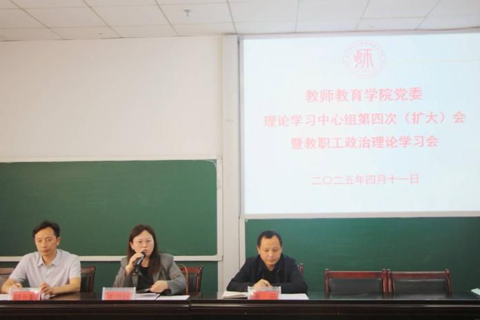 教师教育学院于2025年4月11日在执毓楼103会议室召开党委理论学习中心组2025年第四次理论学习研讨(扩大)会暨教职工政治理论学习会。学院领导班子、全体教职工参会。