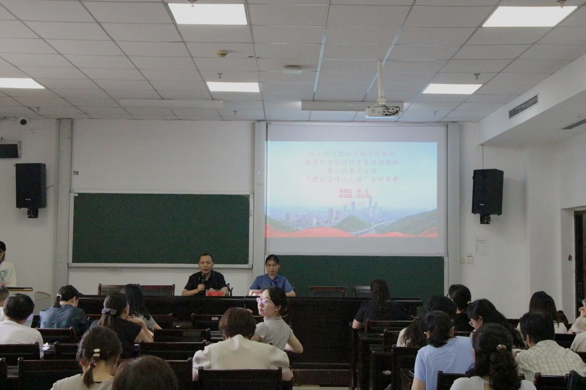 本轮宣讲分别从理论与实践层面展开,由副院长周云和邓正艳老师主讲。周云副院长深入阐释了对一以贯之的战略指引和与时俱进的精准指导、新时代新征程贵州工作主题主线、在中国式现代化进程中展现贵州新风采总目标的深刻领会与把握。同时,详细解读了“坚定不移走高质量发展之路,在建设现代化产业体系上取得更大成效”以及“着力优化营商环境,在释放改革开放动力活力上取得更大成效”等重要部署。