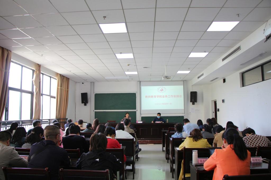 2021年4月1日下午,教师教育学院党委在执毓楼103教室召开业务工作安排会。全院教职工参会。会议由党委副书记、院长朱海同志主持。