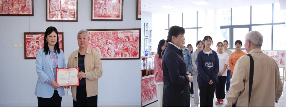 捐赠仪式后,王洪叶书记向刘志华老师颁发了教师教育学院专家聘书。希望非遗专家刘志华老师多来我院指导学生学习红色艺术剪纸技法,弘扬工匠精神,把教师教育学院红色剪纸育人特色发扬光大。