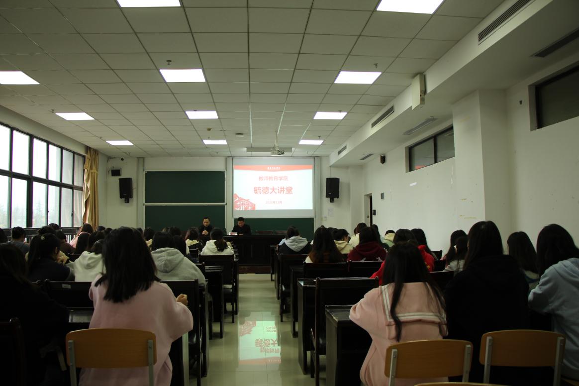 百年大计,教育为本;教育大计,教师为本。为坚定师范生理想信念,充分发挥名师的榜样引领作用,2022年11月15日上午,教师教育学院邀请贵州省省管专家、全国教育系统劳动模范、贵州省优秀共产党员获得者,余庆县龙家小学梁中凯老师在执毓楼103会议室作了题为《教师与学校同发展》的讲座。教师教育学院副院长周云,小学教育教研室主任刘星老师、小学教育专业任正霞老师、邓正艳老师以及21级小学教育专业全体同学聆听此次讲座。