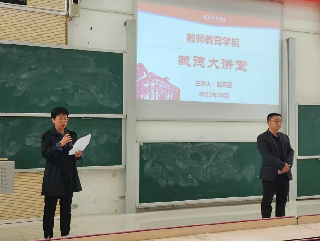为进一步提升小学教育专业学生对小学教师职业的认同感,架构起理论与实践的沟通,提升师生的专业素养,2023年10月20日上午,小学教育教研室邀请了贵州省小学语文骨干教师、贵州省“黔灵名师”、微信买球官方网站附属实验学校赵凤强老师在执毓楼107教室作了题为“做一名优秀的语文教师,从这里出发”的专题讲座。讲座由何芙蓉老师主持,小学教育教研室王姗老师、张伟老师、邓正艳老师、2021级和2022级小学教育专业全体学生参加。